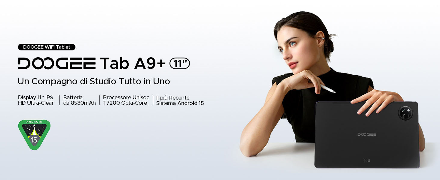 DOOGEE Tab A9+ Tablet Unisoc T7200 20GB+64GB 11 pollici 8580mAh Android 15